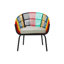 Estructura de hierro con pintura electrostática, forrada en tejido de tubito PVC 100%, con asiento en triplex espuma y tela antifluido..